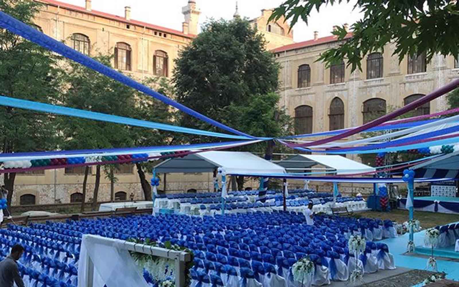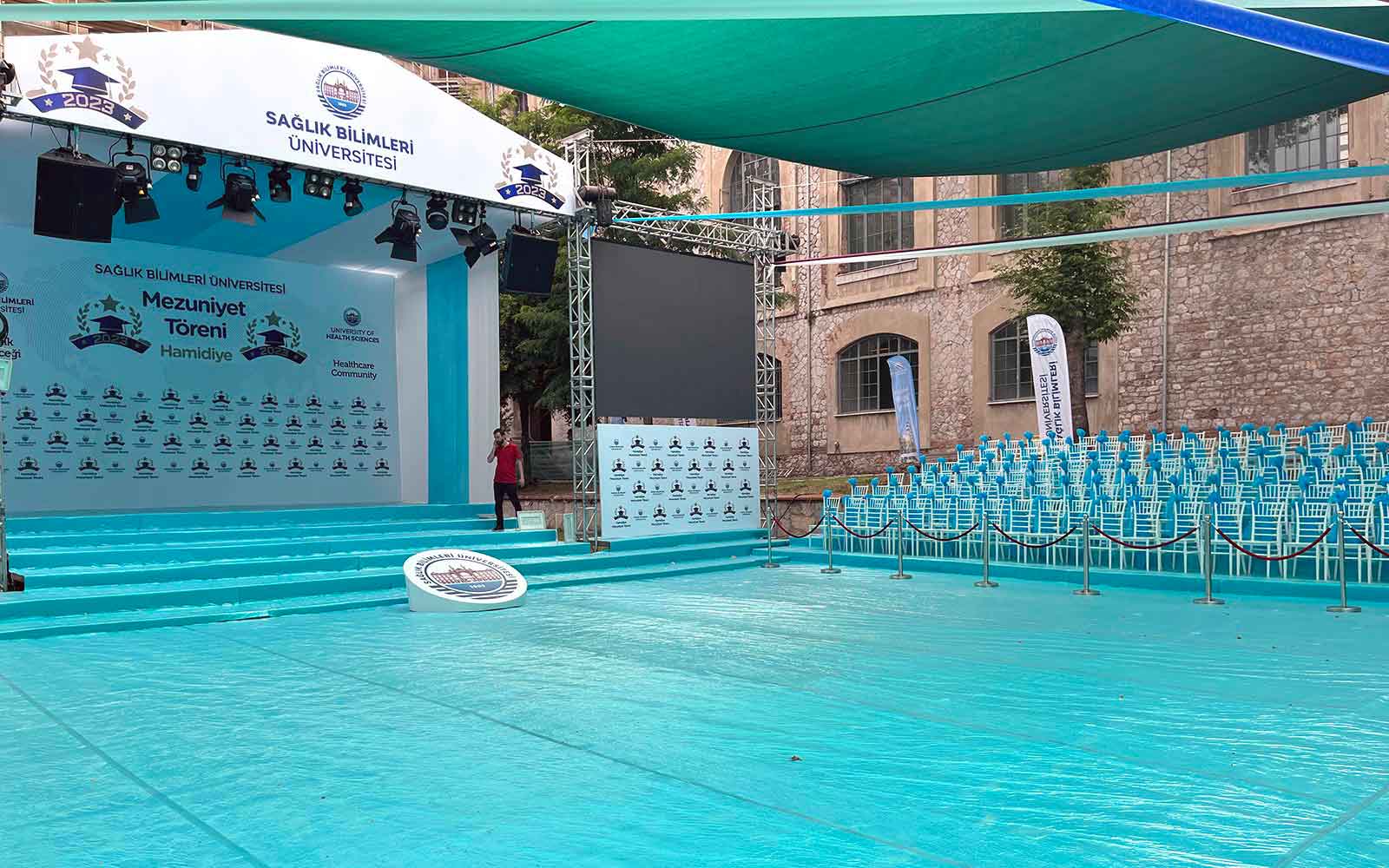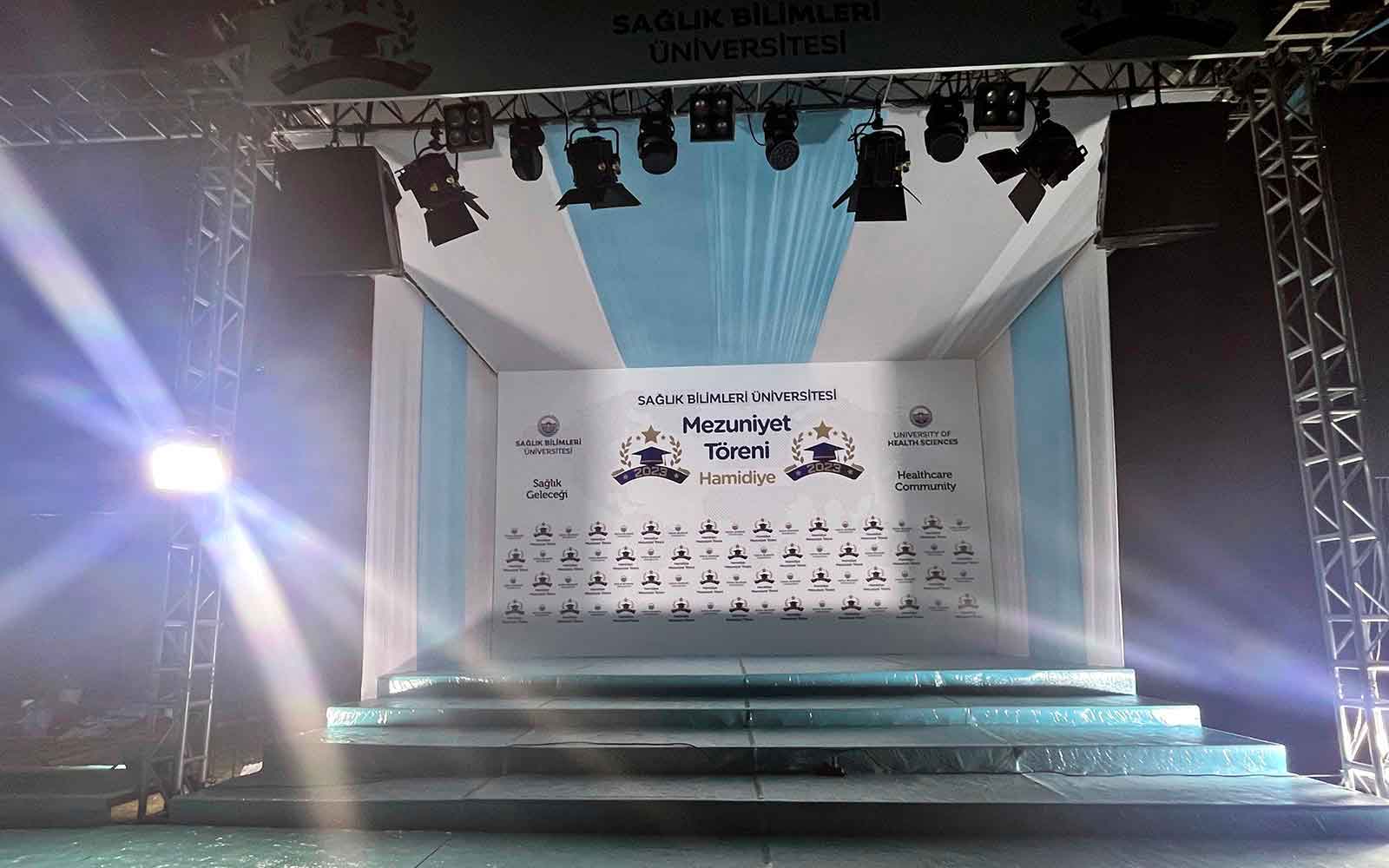 Mezuniyet törenleri, öğrenci ve aileler için hayat boyu unutulmayacak özel anları temsil eder. Firmamız, mezuniyet törenlerinizin kusursuz geçmesi için gerekli olan tüm hizmetleri sağlar. Sahne kurulumu, dekorasyon, ses ve ışık sistemleri, diploma sunumu gibi süreçler profesyonel ekibimiz tarafından planlanır ve yönetilir.