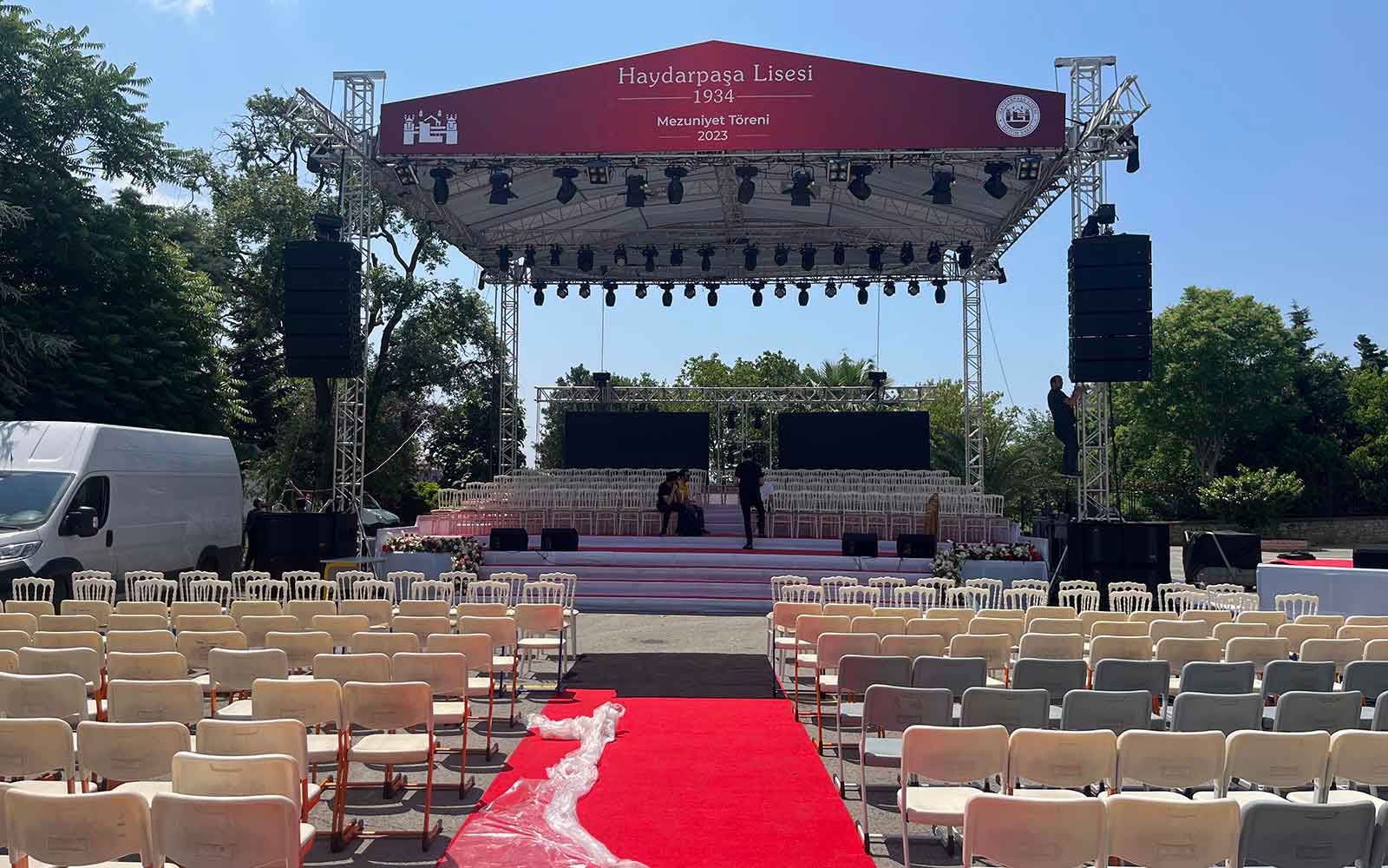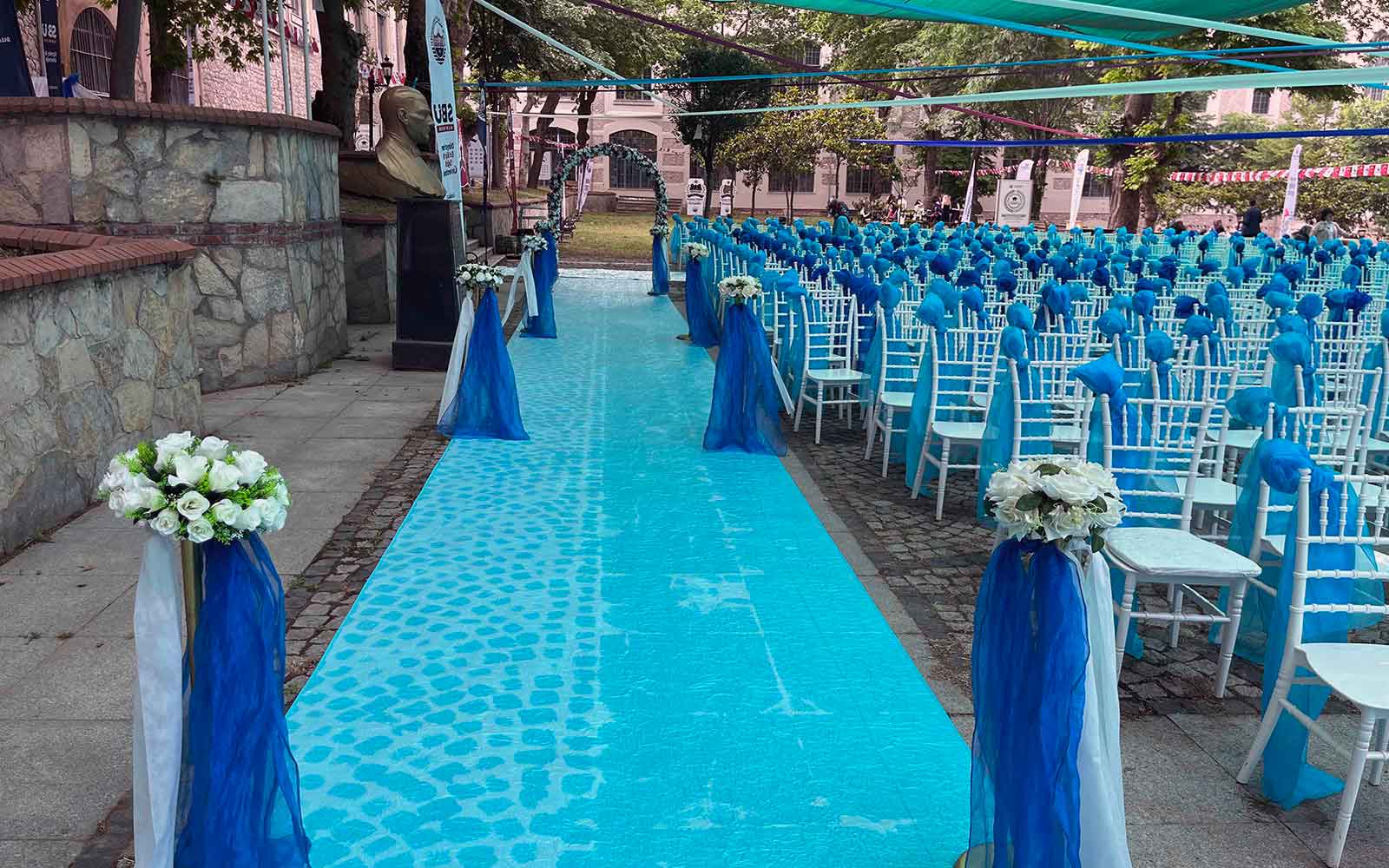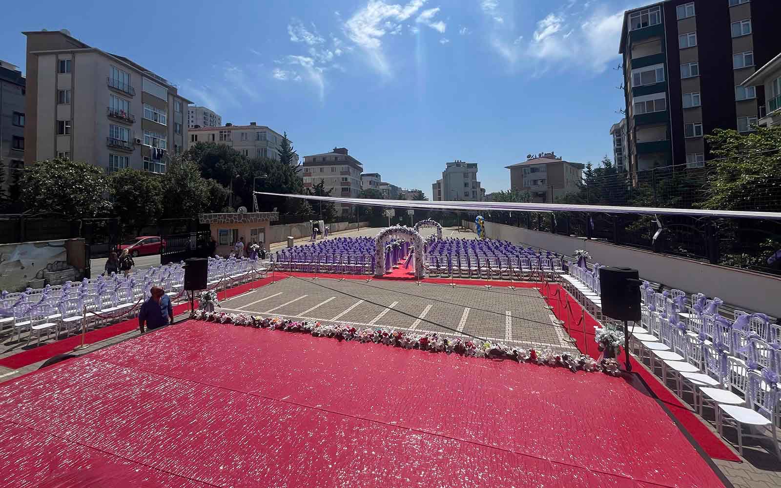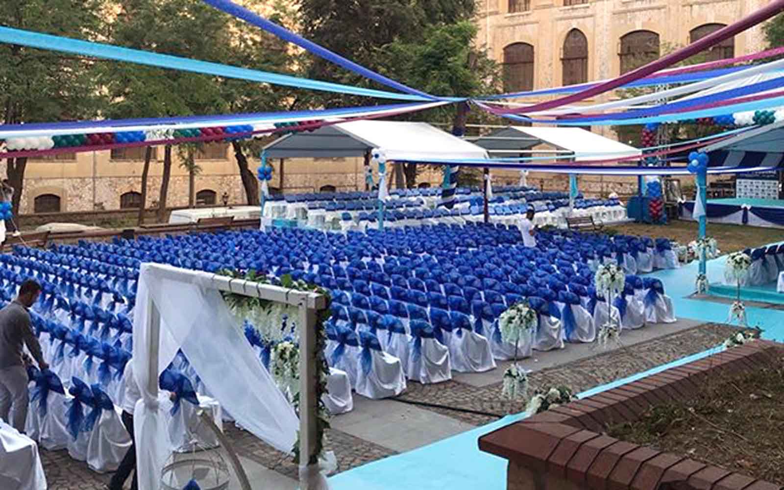 Mezuniyet törenleri, öğrenci ve aileler için hayat boyu unutulmayacak özel anları temsil eder. Firmamız, mezuniyet törenlerinizin kusursuz geçmesi için gerekli olan tüm hizmetleri sağlar. Sahne kurulumu, dekorasyon, ses ve ışık sistemleri, diploma sunumu gibi süreçler profesyonel ekibimiz tarafından planlanır ve yönetilir.
